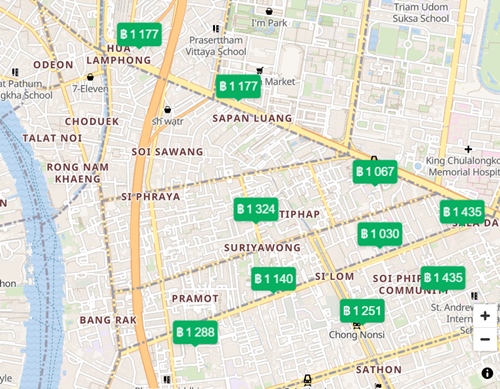 แผนที่ โรงแรม ที่พัก ใน กรุงเทพ ราคา 1000 – 1500 บาท