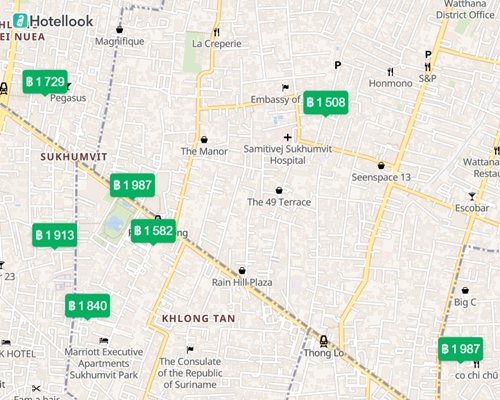 แผนที่ โรงแรม ที่พัก ใน กรุงเทพ ราคา 1500 – 2000 บาท