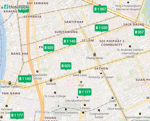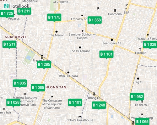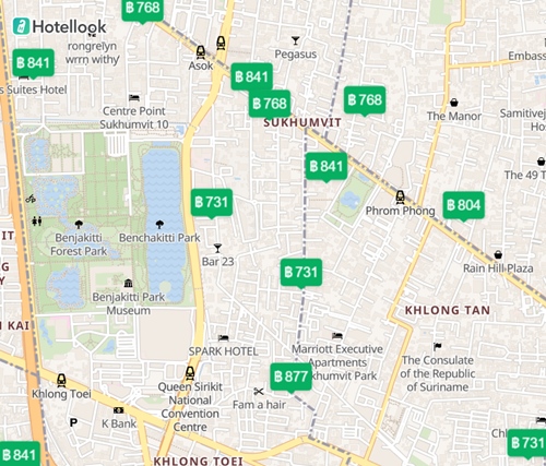 แผนที่ โรงแรม ที่พัก ใน กรุงเทพ ราคา 900 – 1200 บาท