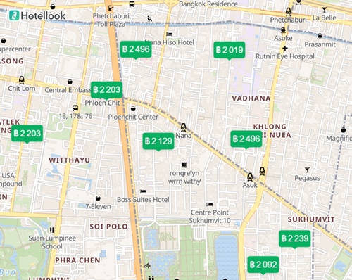 แผนที่ โรงแรม ที่พัก ใน กรุงเทพ ราคา 2000 – 2999 บาท
