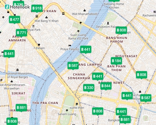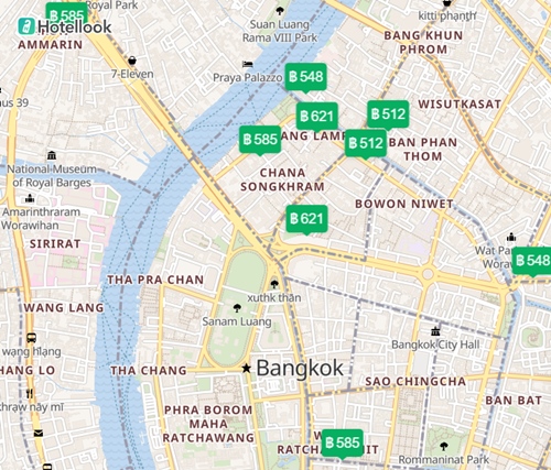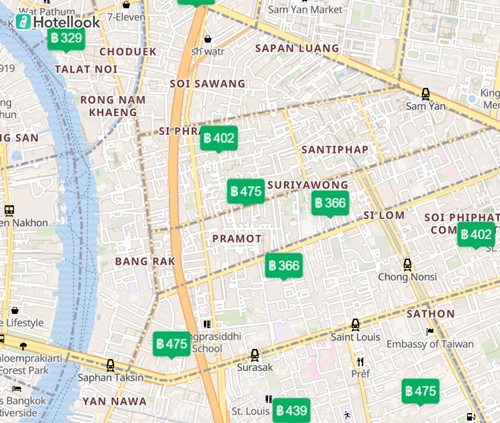 แผนที่ โรงแรม ที่พัก ใน กรุงเทพ ราคา 300 – 500 บาท