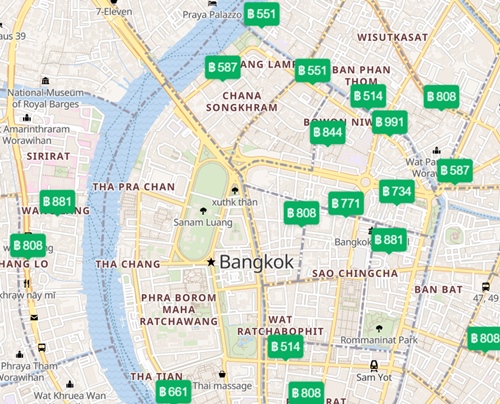 แผนที่ โรงแรม ที่พัก ใน กรุงเทพ ราคา 800 – 1000 บาท