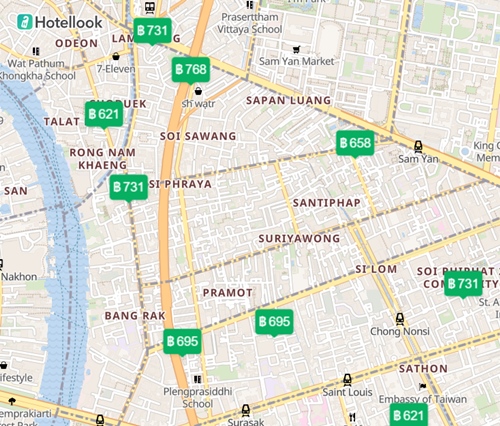 แผนที่ โรงแรม ที่พัก ใน กรุงเทพ ราคา 600 – 800 บาท