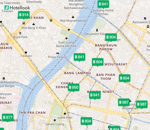 แผนที่ โรงแรม ที่พัก ใน กรุงเทพ ราคา 700 – 900 บาท