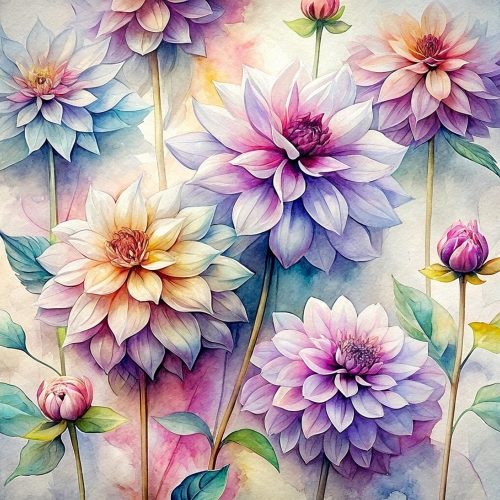Hand drawn dahlia flowers pattern background free image