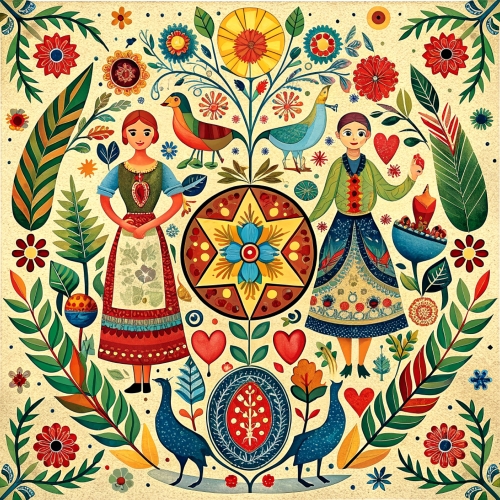 Swedish folk art aesthetic background wallpaper free image