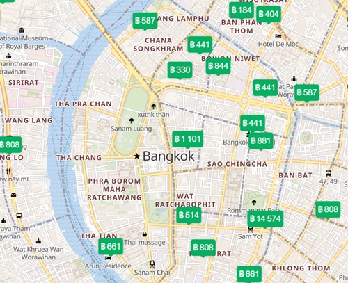 แผนที่ โรงแรม ที่พัก ใน กรุงเทพ ราคา 99 – 499 บาท