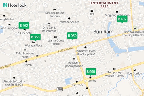 แผนที่โรงแรม ที่พักหลักร้อยบุรีรัมย์ Cheap hotels in Buriram