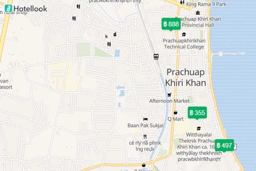 แผนที่โรงแรม ที่พักหลักร้อยประจวบคีรีขันธ์ Cheap hotels in Prachuap Khiri Khan