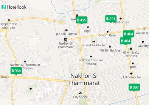 แผนที่โรงแรมนครศรีธรรมราช Map Hotels in Nakhon Si Thammarat