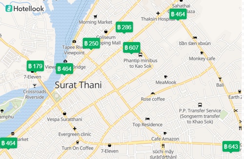 แผนที่โรงแรม ที่พักสุราษฎร์ธานี Map Hotels in Suratthani