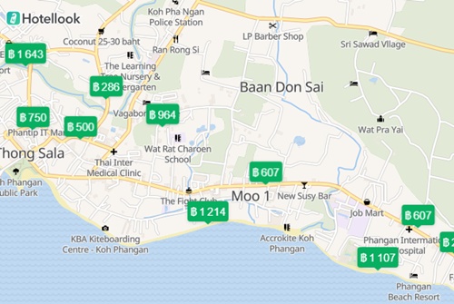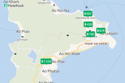 แผนที่โรงแรม ที่พักเกาะพะงัน Map Hotels in Koh Phangan