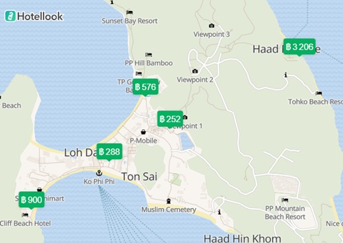 แผนที่โรงแรม ที่พักเกาะพีพี Map Hotels in Phi Phi Island
