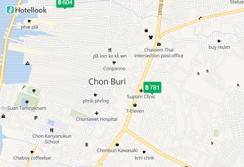 แผนที่โรงแรม ที่พักหลักร้อยชลบุรี Cheap hotels in Chonburi